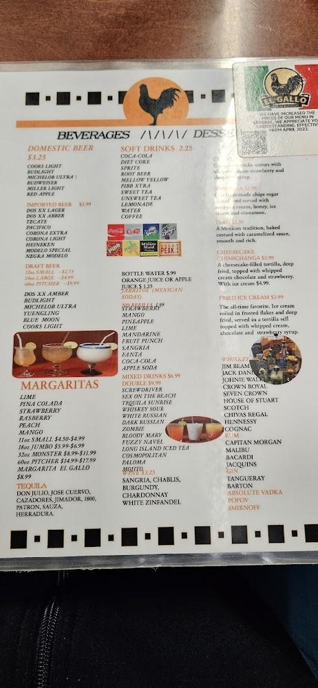 El Gallo's menu features a variety of traditional Mexican dishes. Diners can explore an array of tacos, burritos, enchiladas, and salads. The menu is designed to cater to various tastes, including vegetarian options, making it easy for anyone to find something to enjoy.